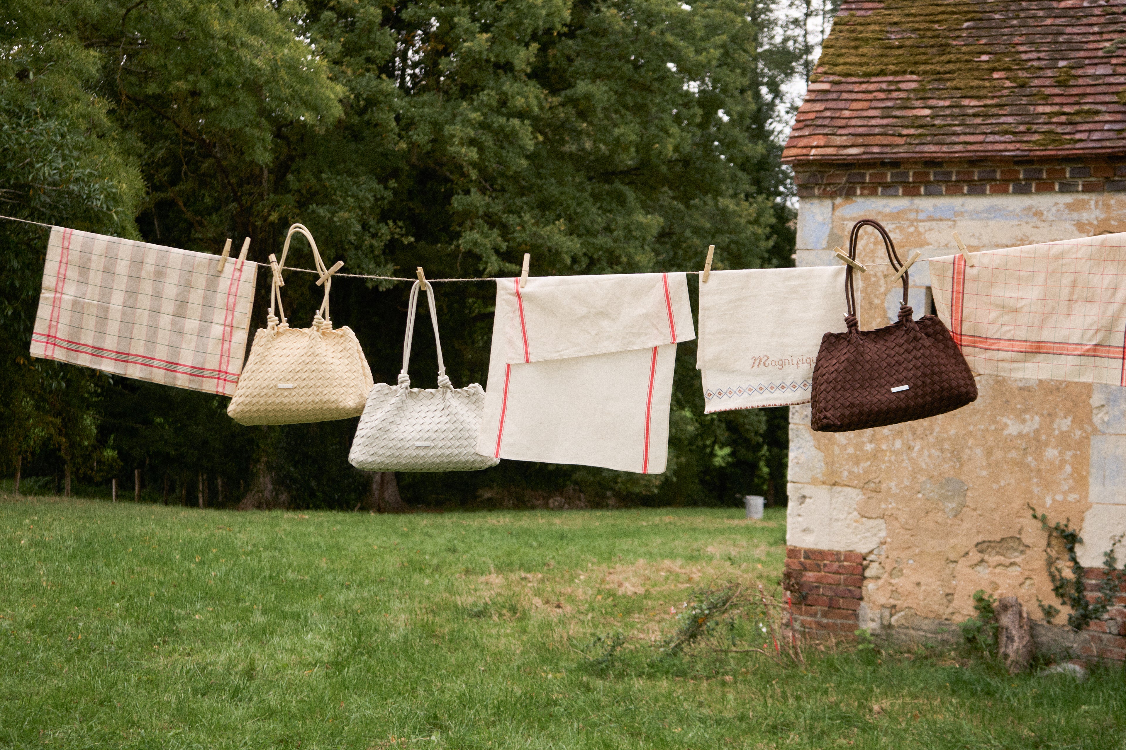 Inspired by the gentle textures and tones of the countryside, Jardin’s hand-woven silhouette carries the warmth of the harvest — in hues of Corn, Sage, and Cacao.